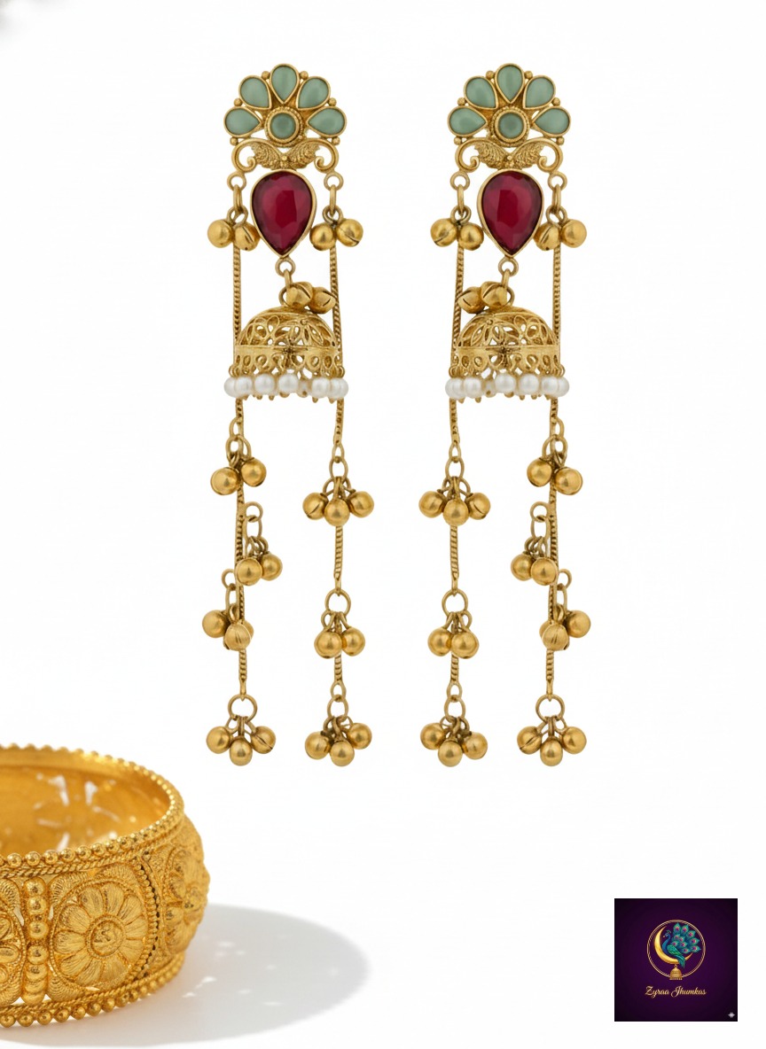 Style/Size: Long dangler jhumka (Approx. 3.5–4 inches length)